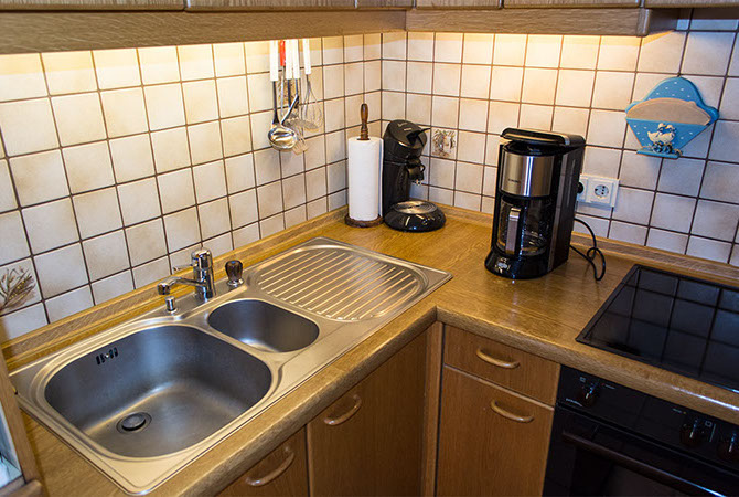 Die kleine Einbauküche - mit Herd, Spüle, Kühlschrank und Geschirrspüler